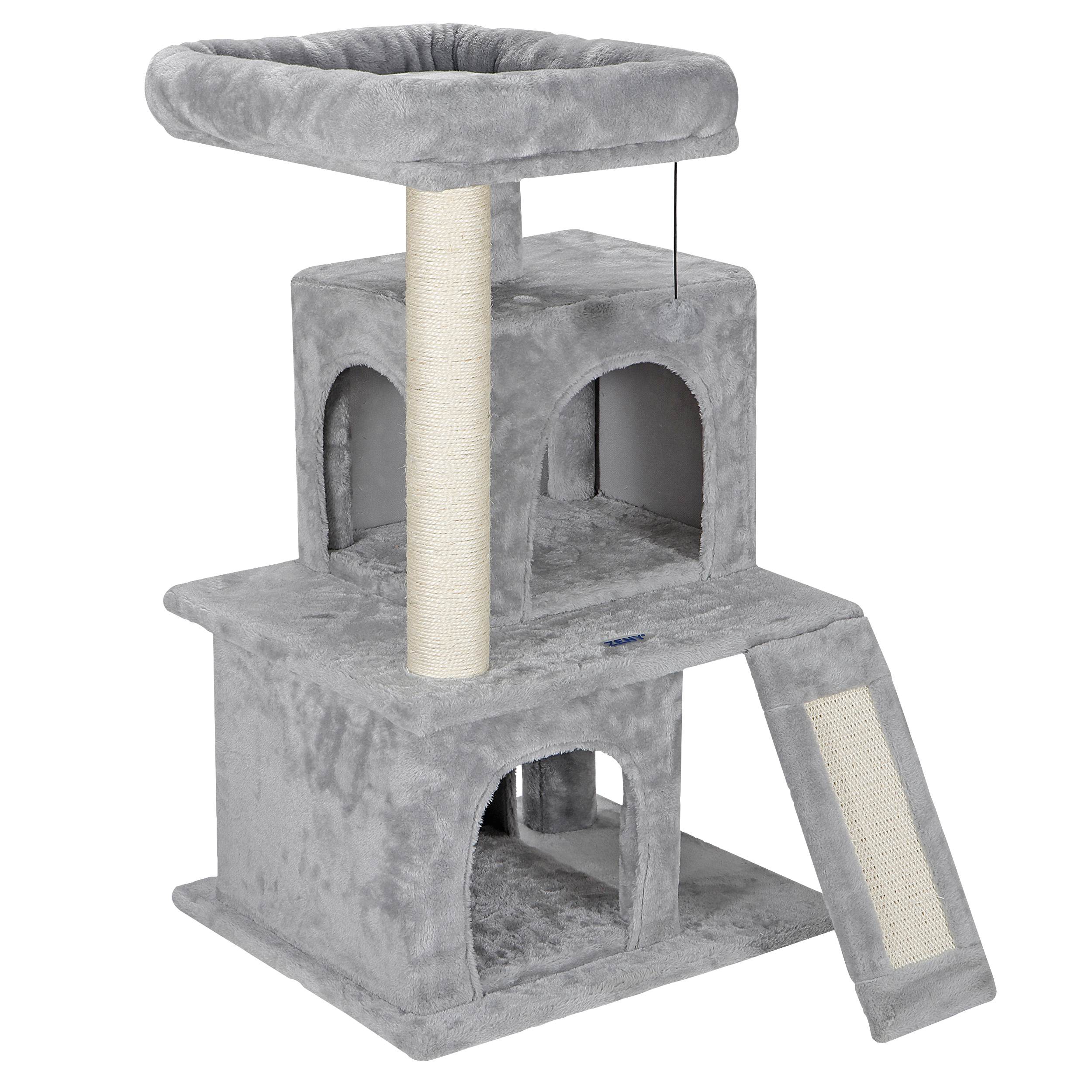 子猫ちゃんも安心の高さ キャットタワー 高さ約85cm 猫タワー おもちゃのポール 2つ猫部屋付き ふわふわ素材 天然サイザル麻紐 爪とぎ 子猫やシニア猫ちゃんも安心 安定性抜群
