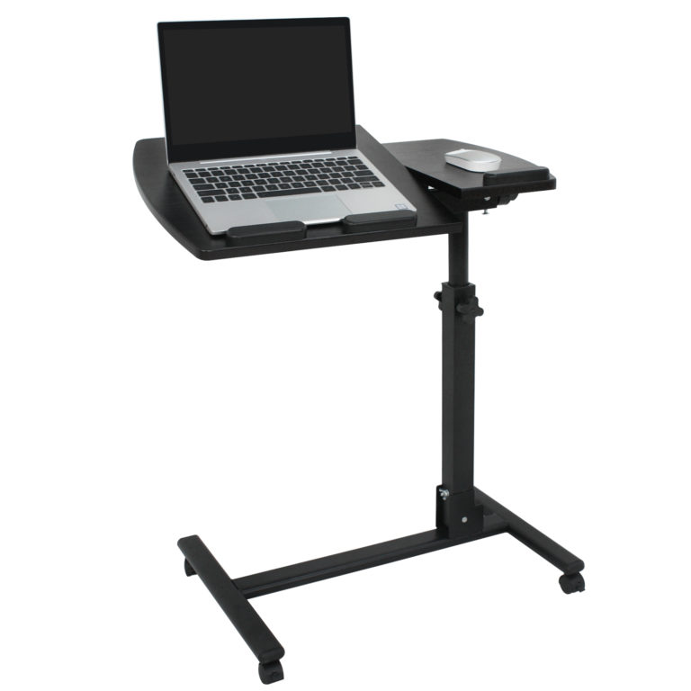 可動式で移動もラクラク! ノートパソコンスタンド ソファ ベッド サイドテーブル 傾斜角度&高さ調整可能 ノートパソコンデスク キャスター付き 可動式デスクカート 作業台 店舗 工場 医療機関 リビング 高さ約60cmから90cm